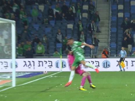 ליאור רפאלוב תועד תופס את הראש באכזבה דקות אחרי שמחמוד ג'אבר החטיא ממסירה של קפטן הירוקים במקום לחזור לרחבה.
