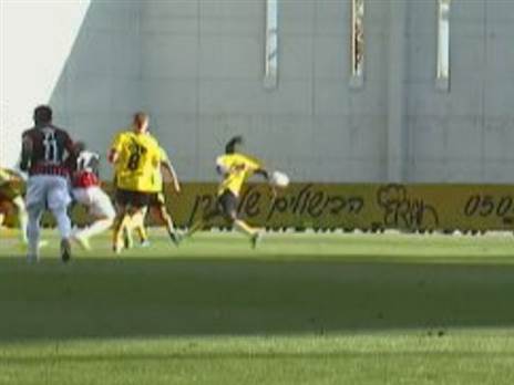 דיסטלפלד בעט כדור שפגע בידו של ג`טיי מנתניה, השופט הצביע על הנקודה