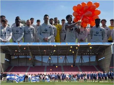 מכבי תל אביב הפריחה בלונים כתומים באימון הקובה הבוקר, והקפטן ערן זהבי נשא דברים, וכמוה גם הפועל באר שבע שהשתתפה באבלן של משפחות ביבס וסילברמן.