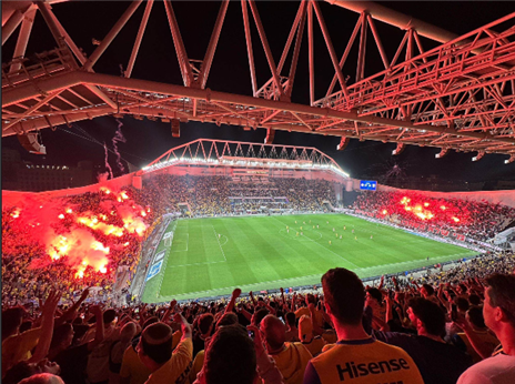 אבוקה שנורתה מחוץ לבלומפילד נחתה היישר בשער 7 עליון, המאכלס את אוהדי מכבי ת"א. גורמים במועדון הצהוב הגיבו בדאגה: "זה מסוכן מאוד".