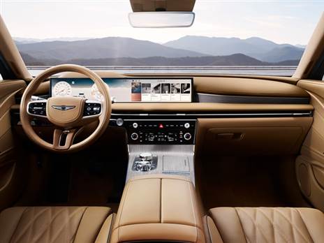 בתא הנוסעים השינוי בולט ודומה לזה שעבר רכב הפנאי הגדול ה-GV80. השינוי הבולט ביותר הוא לוח מחוונים ומסך מולטימדיה המחוברים להם יחדיו לכדי מסך ענק בגודל "27 והגה בעיצוב חדש הכולל גם מערך כפתורים חדש. בנוסף התעדכן גם חלקו המרכזי של הדשבורד עם פאנל בקרת אקלים גדול יותר המתחבר כעת אל הקונסולה המרכזית, שם נמצא גלגלת שליטה ובורר הילוכים קריסטלי בעיצוב חדש.