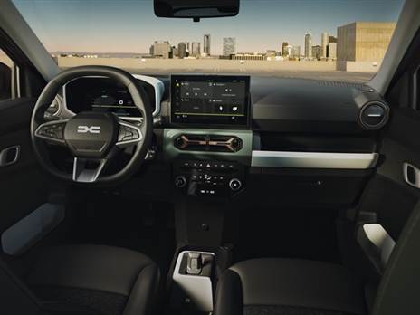 תא הנוסעים עבר מהפכה, ולמעט כמה חלקים בודדים, כמו פתחי המיזוג בצדדים וידיות פתיחת הדלתות, ישנו דשבורד בעיצוב חדש וזוויתי יותר, פאנל בקרת אקלים חדש, פתחי מיזוג במרכז עם מוטיב האות Y ומעליהם מסך מולטימדיה חדש בגודל "10 ושקעי USB Type C, ישנו גם בורר הילוכים חדש והגה חדש לגמרי כשחלקו העליון והתחתון קטומים ודרכו ניתן להביט בלוח מחוונים דיגיטלי בגודל "7. עוד הוסיפו בדאצ'יה נגיעות צבע לכמה אלמנטים שונים. בדאצ'יה מציינים כי נפח האחסון בתא הנוסעים צמח מ-23.1 ליטר לכ-33 ליטרים.
