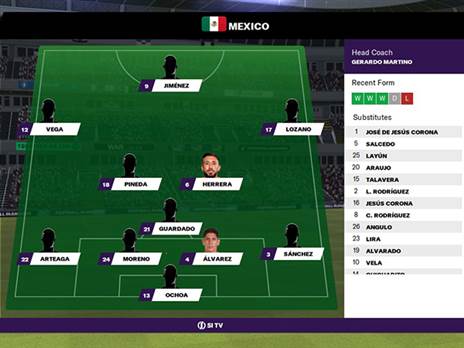 בדקה ה-43, חלוץ וולבס ראול חימנז, קיבל כדור רוחב משחקן אייקאס ההולנדית, חורחה סאנצ'ס על גבול קו הנבדל של ההגנה. כמו בחיים האמתיים, השוער הלך לעמדת ה-VAR כדי לבדוק את המהלך, ואישר את השער כעבור דקה. 1-0 למקסיקו לקראת המחצית.