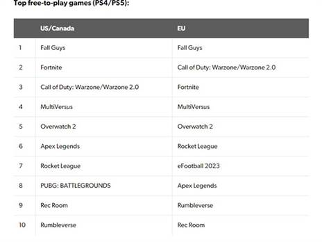 סוני עוד חשפה את טבלת המשחקים החינמיים שהורדו הכי הרבה השנה. אפילו בלי לקבל את המספרים האמתיים, ידוע שהתחרות בטבלה זו הרבה יותר חזקה עקב האי תשלום למשחקים. בשנה שעברה פורטנייט כיכב במקום הראשונים בשני האזורים השונים. הפעם במפתיע או לא, Fall Guys חוגג "סוויפ" באירופה ובאמריקה. במקום השני באירופה קיבלנו את שני מצבי הבאטל רויאל של קול אוף דיוטי, Warzone. זה קצת מאכזב שסוני איחדה בין שני המשחקים. היה מעניין לראות אם המשחק הישן הצליח לשמר גיימרים. Warzone נמצא במקום השלישי באמריקה. פורטנייט לקח את המקום השני בצד השני של העולם (אמריקה), ואת המקוום השלישי באירופה.