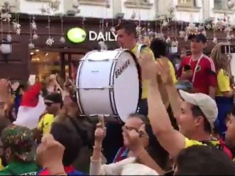 בוידיאו: אוהדי קולומביה מחממים גרונות ברחובות מוסקבה >>