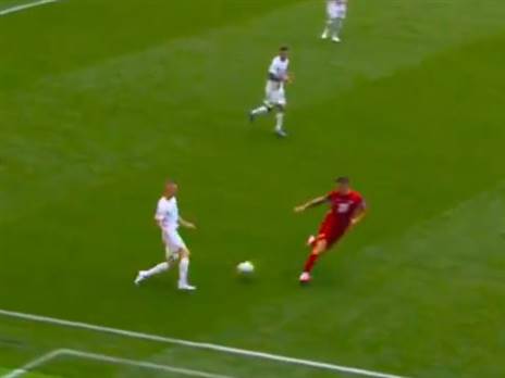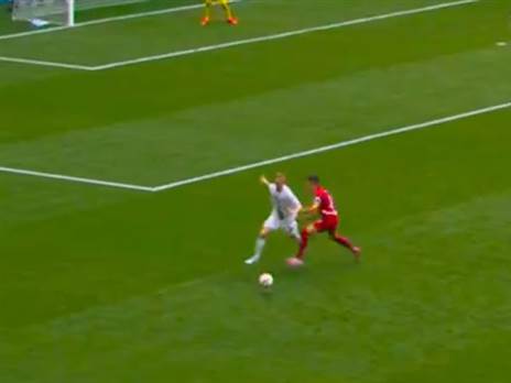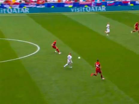 2. המגן עקף את יריבו הסרבי ולאחר מכן המשיך ועבר סרבי נוסף, מהלך ששיחרר אותו לרוץ קדימה.