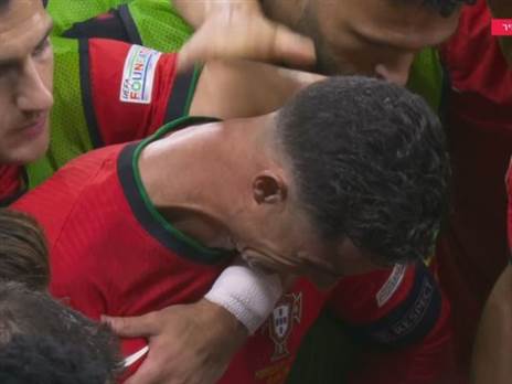 הפורטוגלי הבקיע שלושה פנדלים ביורו הקודם, כולל שניים ב-2:2 מול צרפת דאז והבקיע אחד במונדיאל. כעת הוא תועד דומע, וזכה לחיבוקים מחבריו על כר הדשא. רונאלדו, אגב, החטיא 3 מ-9 בעיטות עונשין ביורו ובמונדיאלים. הוא השחקן הראשון אי פעם שמחטיא שתי בעיטות עונשין בתולדות היורו.