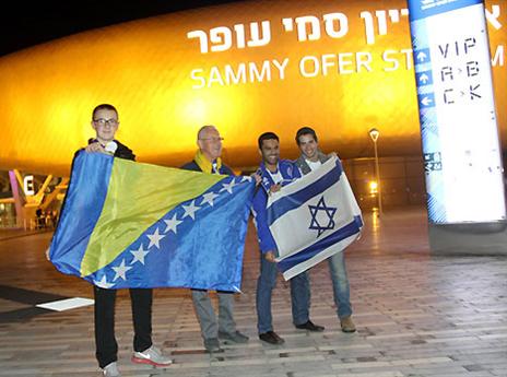 Bosnian fans representing their country at Sammy Ofer Stadium in Haifa. #BiHvsIsrael pic.twitter.com/M96LDBlco2— BHDragons (@BH_Dragons) נובמבר 16, 2014
