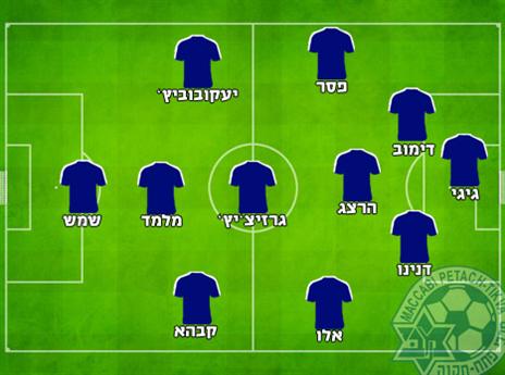 עם ההרכב הזה צפוי עידן בר און לעלות לקרב החשוב מול הפועל ת"א: קאלה דרשלר, קובי מוסא, עודד גביש, שגיב כהן, מייקל טוקורה, מבה צ'ימאזי, גיא דיין, דור כוכב, עומרי אלטמן ושחר הירש [רועי זריהן]