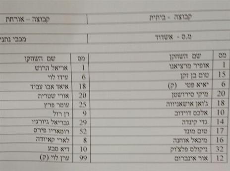 אוהדי הפועל ת"א, זה ההרכב שלכם הערב: תום אלמדון, מתן אוחיון, סארי פלאח, יורגן קולין, שון גולדברג, לוקאס סאשה, משה אוחיון, בן רייכרט, רמזי ספורי, שגיב יחזקאל ודודו ביטון.