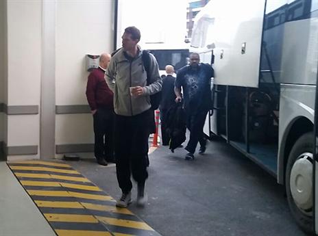 צפו בקטע - שחקני מכבי תל אביב מגיעים לאולם באיסטנבול.