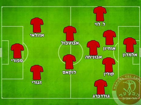 הרכב משוער: תום אלמדון; ליאור לוי, יורגן קולין, אבונימה, מתן אוחיון, שון גולדברג; שי אבוטבול, סאשה לוקאס; ישראל זגורי, רמזי ספורי (אמידו באלדה), שלומי אזולאי.