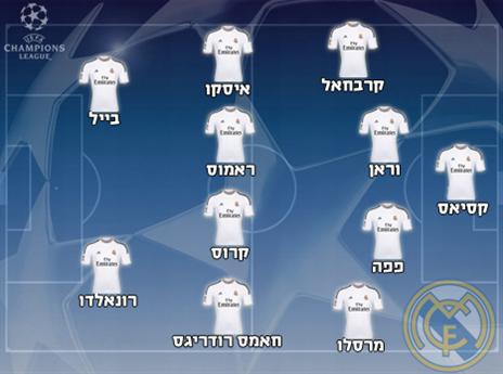 ההרכב המשוער של ריאל מדריד: איקר קסיאס; דני קרבחאל, פפה, רפאל וראן, מרסלו; סרחיו ראמוס, חאמס רודריגס, טוני קרוס, איסקו; גארת' בייל, רונאלדו.