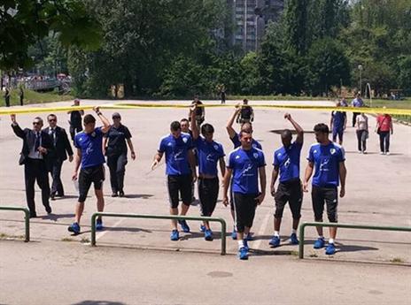 שימו לב לתמונה הזו - אבטחה כבדה בזניצה לקראת המשחק בין בוסניה לישראל.