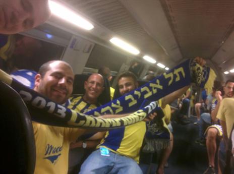 צבעו את הרכבת: אוהדי מכבי תל אביב מרעישים בקרונות בדרך לחיפה