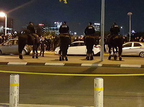 נראה שעל יחידת הפרשים של המשטרה הוטלה משימה מיוחדת: שמירה אישית על אוהדי בית"ר ירושלים. ככה זה נראה מחוץ למושבה