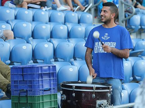האוהדים הכחולים מכינים את ציוד העידוד