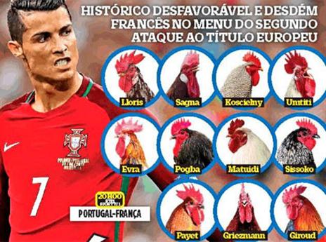 התקשורת הפורטוגלית מתגייסת למשימה הלאומית. בשער העיתון הנפוץ OJOGO בחרו להקניט משהו את היריבה הערב, כאשר שחקני צרפת הוצגו כתרנגולים....