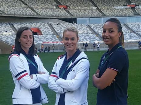 המשחקים האולימפיים ייפתחו כבר היום עם טורניר כדורגל הנשים. שחקניות נבחרת צרפת מתרגשות לקראת ההתמודדות מול קולומביה (התאחדות הכדורגל הצרפתית)