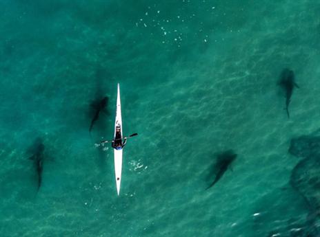 ביום שישי האחרון נראתה להקת כרישים מפלצתיים בחופי חדרה. המפגש המפחיד עם חיות הטרף הימיות קרה במסגרת פעילות מועדון הקיאקים של מרכז דניאל לחתירה. (צילום אירית ק. אברמוביץ'.)