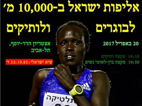 היום ב-19:00 תיפתח אליפות ישראל בריצת 10 אלף מטרים באיצטדיון האתלטיקה בהדר יוסף. על הפרק: שבירת השיא הישראלי לגברים ולנשים. במוקד אצל הגברים, גירמה אמרה ודמקה טשאלה יתחרו, כשאצל הנשים תהיה זה צ'מטאי קורלימה שתמשוך את מירב תשומת הלב.