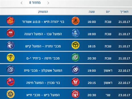 להלן משחקי המחזור השמיני בליגת העל. משחק פיצוץ בסמי עופר כבר בשבת!!!