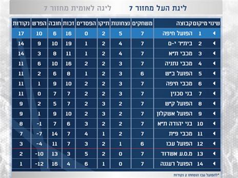 זוהי הטבלה ערב המחזור השמיני. הפועל חיפה תשמור עליו גם בסיומו?