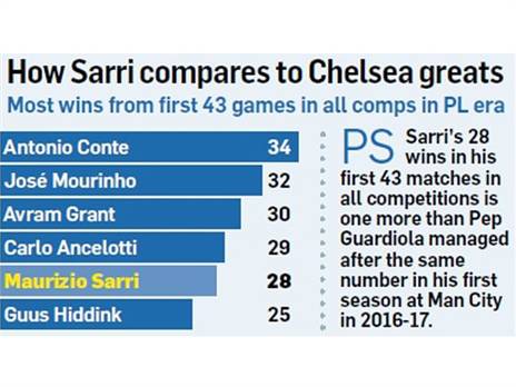 באנגליה לא מפסיקים לעסוק בעתידו של מאוריציו סארי בצ'לסי. כשבדקו את האחוזים שלו אצל הבלוז, גילו נתון מעניין אחר - אברם גרנט במקום השלישי עם 30 ניצחונות ב-43 המשחקים הראשונים שלו על הקווים של הקבוצה