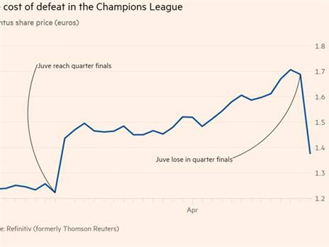 גם נזק כלכלי רציני נגרם ליובנטוס בעקבות ההדחה מהאלופות: מניית הביאנקונרי צנחה ב-18 אחוזים.