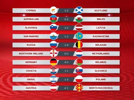 זהו, שריקת הסיום! ארבעת המשחקים הסתיימו, ויש לנו ארבע מעפילות חדשות ליורו 2020! גרמניה, הולנד, קרואטיה ואוסטריה.