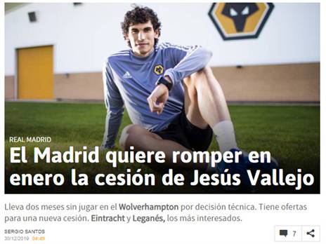 לפי "אס", ריאל מדריד רוצה לבטל את השאלתו של חסוס ואייחו לוולבס בינואר כדי להשאילו לקבוצה אחרת. הבלם הספרדי רשם 612 דקות בלבד מתחילת העונה במדי הזאבים, האחרונות שבהן באוקטובר. לגאנס ואיינטרכט פרנקפורט (אליה הושאל בעבר) כבר הביעו עניין בשחקן.