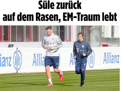בשורות טובות לבאיירן מינכן ובעיקר לנבחרת גרמניה. ניקלאס זולה שנפצע בברך בצורה קשה באמצע אוקטובר חזר לאימונים. בבילד טוענים כי הבלם מאמין שיחזור לפעילות לקראת יורו 2020.