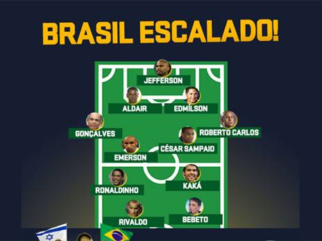 גם הרכב ברזיל פורסם, ושימו לב לשמות: ג'פרסון; גונזאלבש, אלדאיר, אדמילסון, רוברטו קרלוס; סזאר סמפאיו, אמרסון; רונאלדיניו, קאקה; ריבאלדו, בבטו.