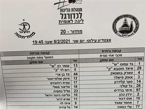 ההרכבים של אחי נצרת והפועל פתח תקווה