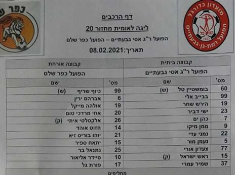 והנה גם ההרכבים של הפועל רמת גן/גבעתיים והפועל כפר שלם