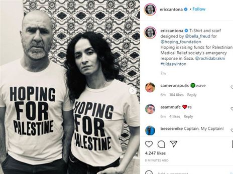 גם אריק קנטונה הביע את תמיכתו בפלשתינים, במסגרת חשבון האינסטגרם שלו