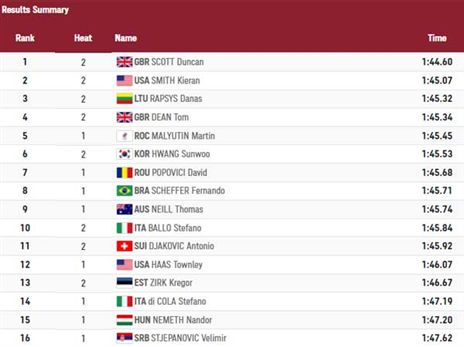 אחרי שני חצאי הגמר, אלו העולים לגמר ב-200 מ' חופשי לגברים. ביניהם, דויד פופוביצ'י הרומני בן ה-16!