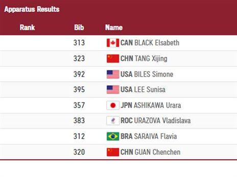 מיד אחרי ביילס, עלתה סוניסה לי האמריקנית. לצערה של הקולגה מארה"ב, היא קיבלה מהשופטים את הציון 13.866. המשמעות: אין פודיום