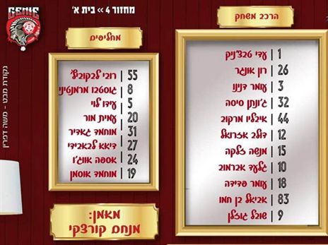 הרכב המשוער של הפועל חיפה: אוהד לויטה; דור מלול, לואי טאהא, בן והבה, דודי טויטו; גל אראל, לירן סרדל, סער פדידה; חנן ממן, איתי בוגנים, אלון תורג'מן.