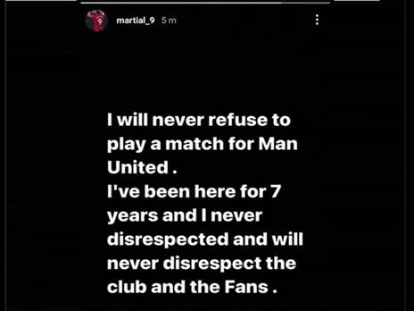 אחרי דבריו של ראלף רנגיק על כך שלא נכלל אתמול בסגל בעקבות סירובו, אנתוני מרסיאל הגיב עם הכחשה באינסטגרם: "לעולם לא אסרב לשחק ביונייטד. אני פה שבע שנים ומעולם לא זלזלתי או אזלזל במועדון ובאוהדיו".