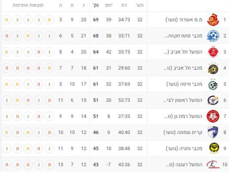 כך נראה החלק העליון של הטבלה ומאבק האליפות הלוהט בין מ.ס. אשדוד למכבי פתח תקווה