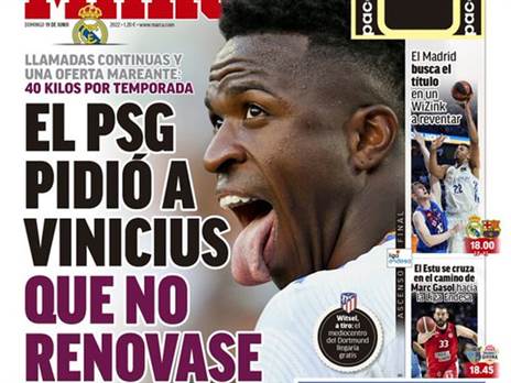 נתחיל עם כותרת הבוקר של העיתון הספרדי "מארקה". פריז סן ז'רמן ביקשה מוויניסיוס שלא להאריך את חוזהו בריאל מדריד. על פי הדיווח, הקבוצה מעיר האורות הבטיחה לו חוזה של 40 מיליון יורו לעונה, מענקי חתימה גבוהים והזדמנויות עסקיות בקטאר.