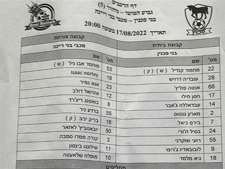 חילוף משולש של סכנין: קבהא, טאהא וקרדוסו נכנסו, שוקרני, מלמד וכיאל יצאו