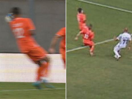 דקה 60: האם מ.ס כפר קאסם קופחה מול ראשל"צ? הרמה של שון מלכה פגעה בידו של סהר רביבו על סף הרחבה, השופט טל כרמלי סימן לבעיטה חופשית