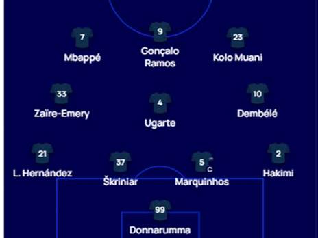 דקה 5: פ.ס.ז' כמעט עלתה ליתרון. אמבפה מצא את דמבלה ברחבה, האחרון בעט מהאוויר אך הכדור חמק החוצה