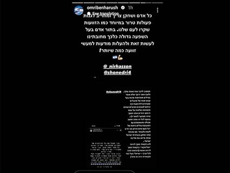 המסר של עומרי בן הרוש: "כל אדם ושחקן צרךי ומחויב לגנות פעולות טרור במיוחד כמו הזוועות שקרו לעם שלנו. בתור אדם בעל השפעה גדולה כל כך מחובתנו לעושת זאת ולהעלות מודעות למעשי זוועה כמה שיותר".