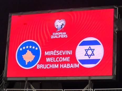 לוח התוצאות באצטדיון בפרישטינה כבר מוכן להתמודדות