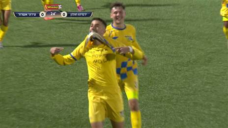 הראל בן אבי העלה את עירוני אשדוד ל-0:1 על ירמיהו חולון בבעיטה חופשית מצוינת בדקה ה-24