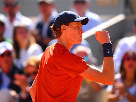 יאניק סינר רחוק מערכה אחת בלבד מהעפלה לגמר הרולאן גארוס לאחר שגבר 3:6 על קרלוס אלקרס במערכה השלישית. האיטלקי מוליך 1:2 במערכות