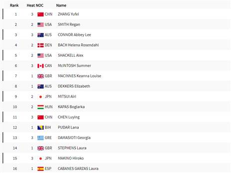 16 העולות לחצי הגמר ב-200 מ' פרפר: